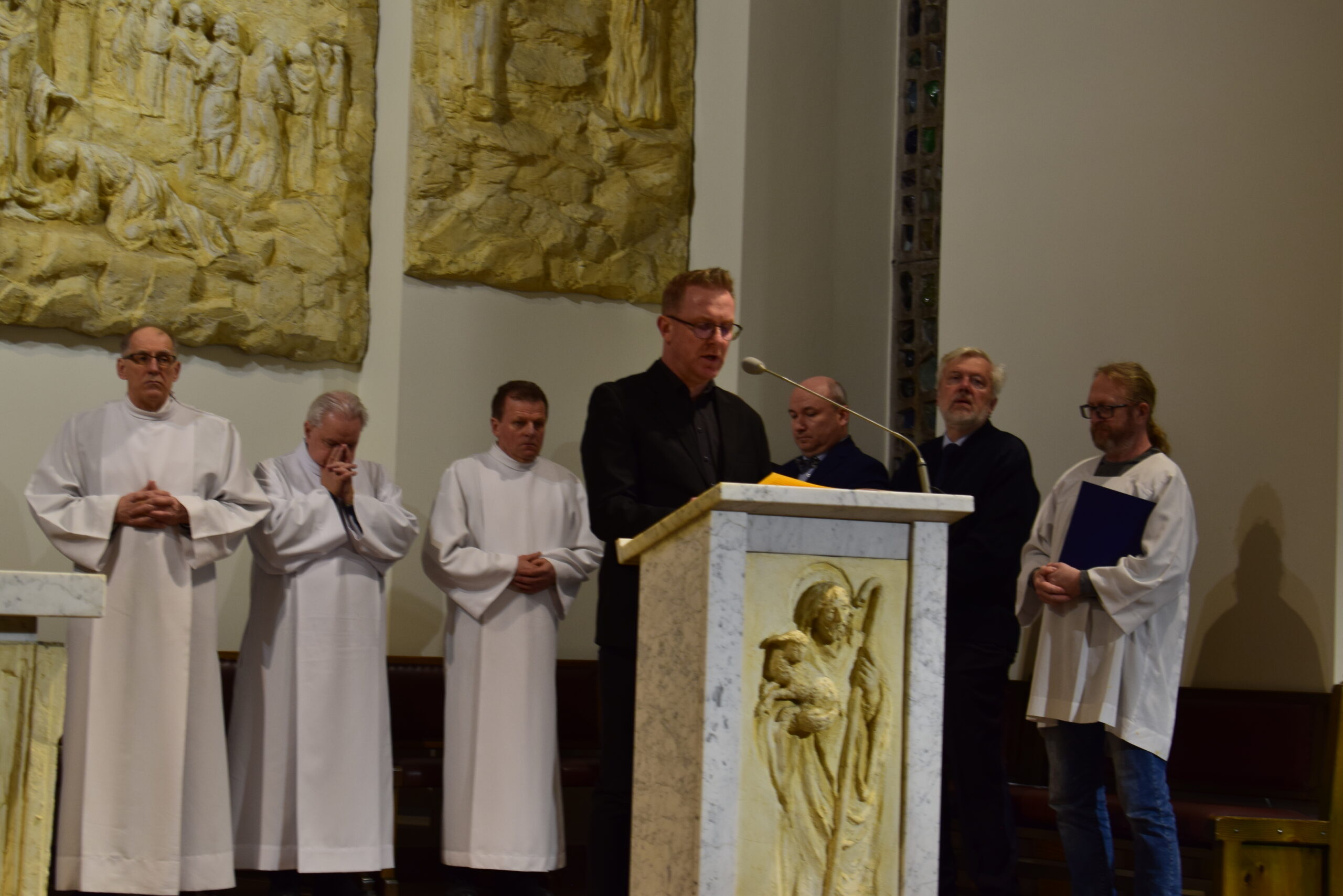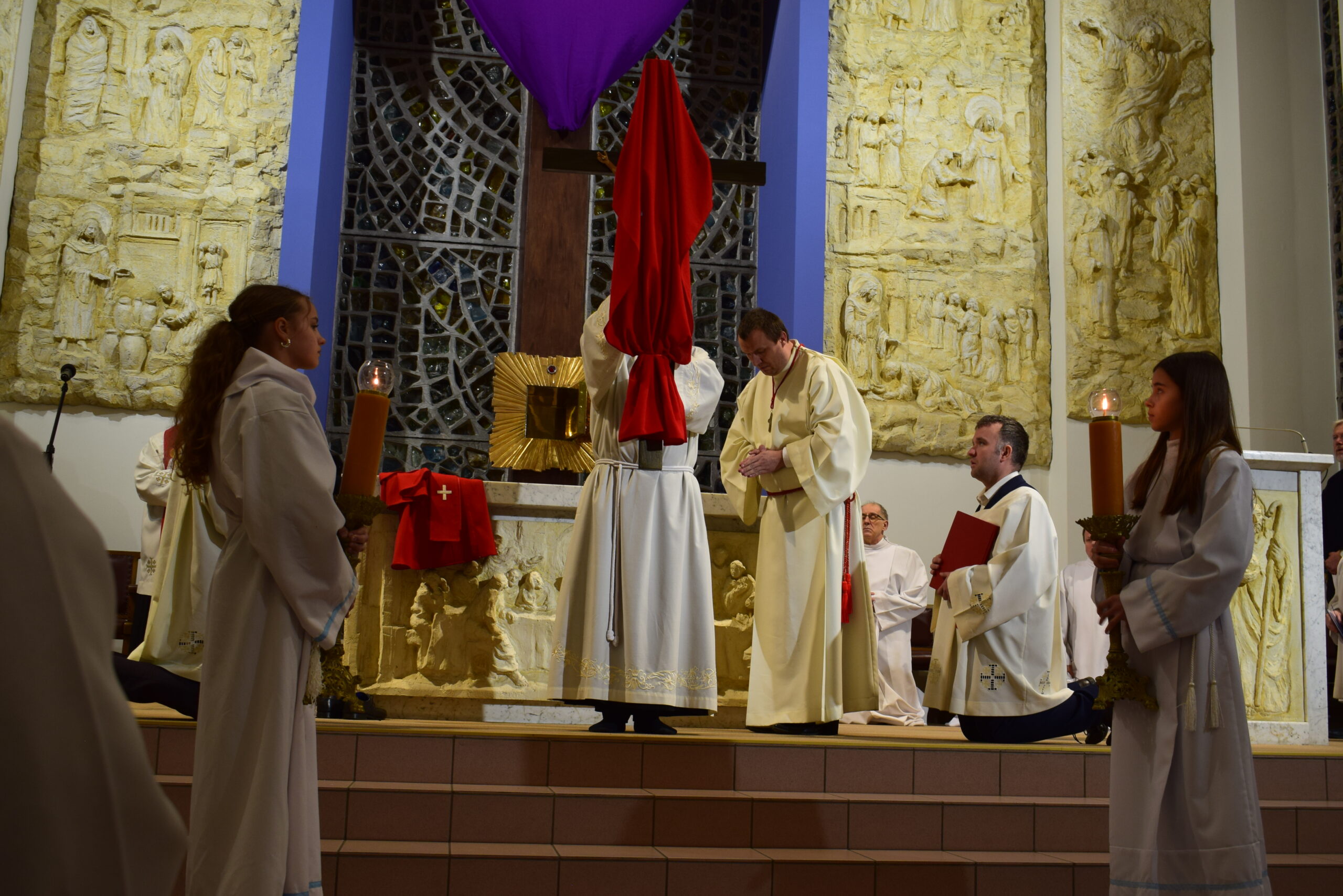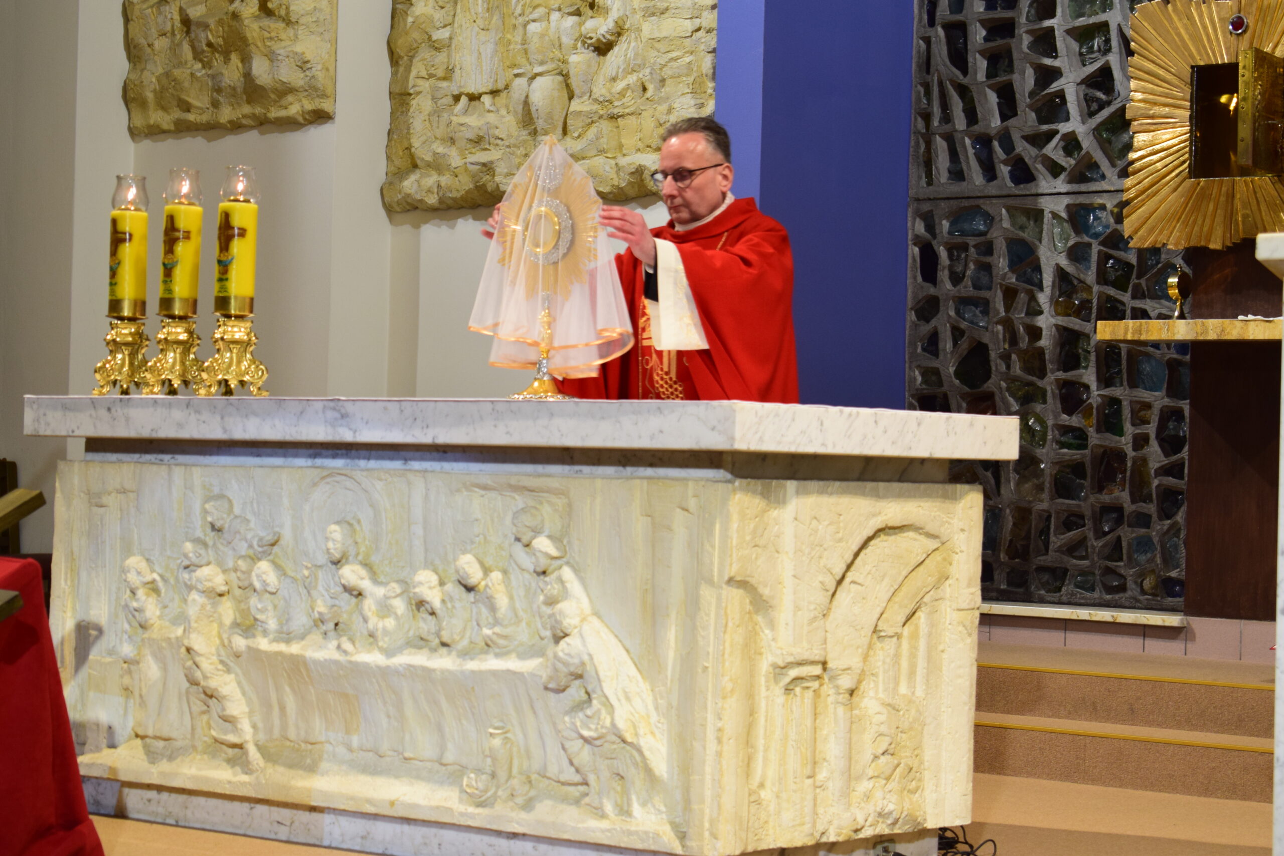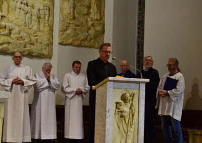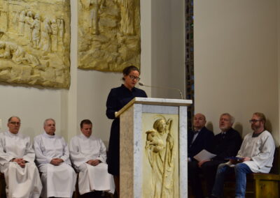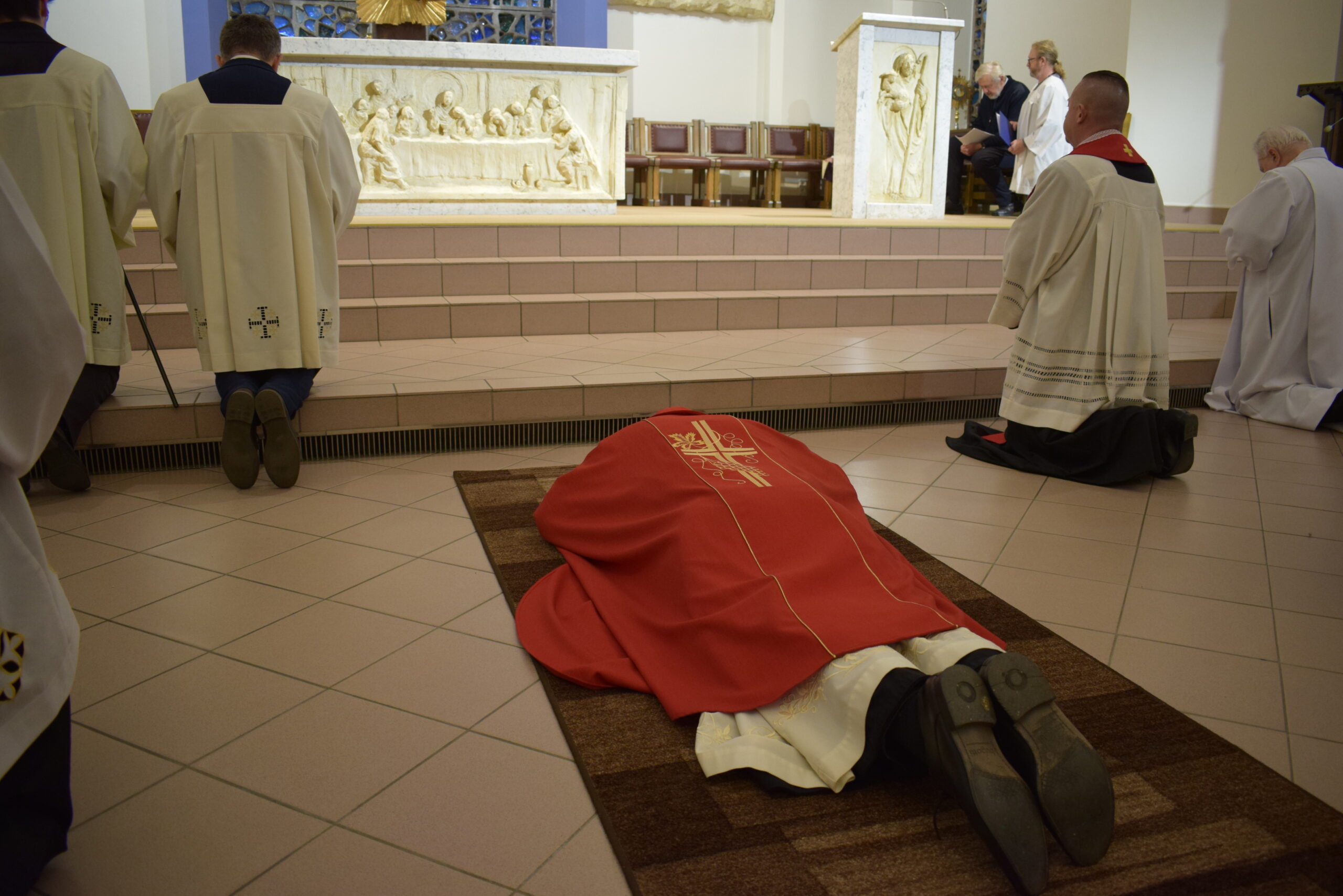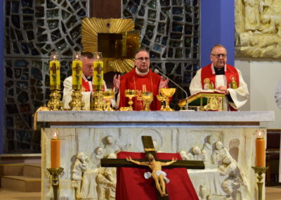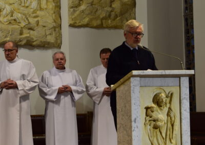 Wielki Piątek to dzień męki i śmierci Pana Jezusa na krzyżu, przeżywany w Kościele w atmosferze ciszy, powagi i głębokiej modlitwy. W naszej parafii wierni licznie uczestniczyli w Liturgii Męki Pańskiej, rozważając wydarzenia zbawczej ofiary Chrystusa. Centralnym momentem liturgii była adoracja krzyża. Ważnym elementem była także uroczysta modlitwa powszechna obejmująca potrzeby całego Kościoła i świata. Po zakończeniu liturgii Najświętszy Sakrament został przeniesiony do Grobu Pańskiego, gdzie wierni trwali na adoracji, czuwając przy Chrystusie i rozważając tajemnicę Jego męki i śmierci.